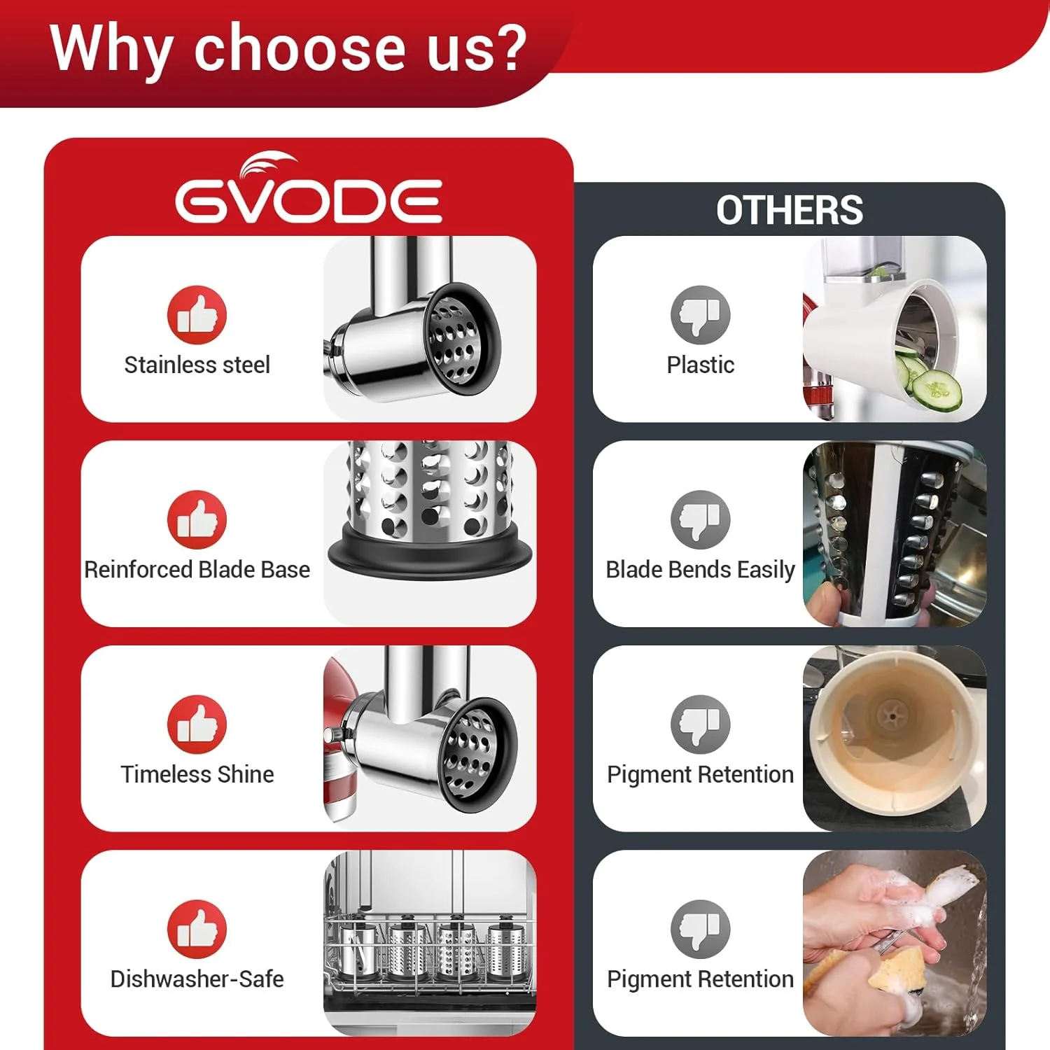 The GVODE Stainless Steel Slicer Shredder Attachment for KitchenAid Stand Mixers is a powerful multi-purpose attachment designed for fast slicing, shredding, and grinding. With premium stainless steel construction, four sharp blade drums, compatibility with KitchenAid and Cuisinart SM mixers, and dishwasher-safe parts, it delivers professional-level performance in everyday kitchens.